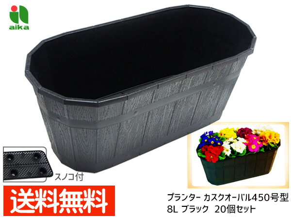 プランター カスクオーバル 450 8L ブラック 黒 20個セット 楕円形 スノコ付アイカ aika aika-kasc450-20 配送不可地域有 法人のみ配送 送料無料