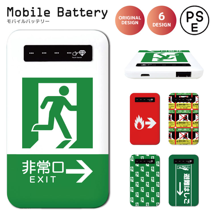 モバイルバッテリー 4000mAh LED インジケーター付き iPhone 対応 iQOS 3 MULTI 防災 対策 大容量 薄型 軽量 iPhone XS Xperia Galaxy AQUOS arrows HUAWEI iPad iQOS glo 対応 おもしろ 非常口 EXIT 出口 エマージェンシー 避難 トレンド かわいい
