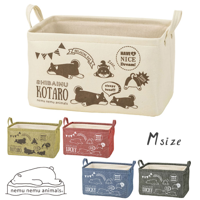収納ボックス 布 収納ケース バスケット ねむねむアニマルズ M 全5種類 約 幅38×奥行26×高さ23cm 小物入れ 整理箱 収納 おもちゃ箱 布製 取っ手付き 収納用品