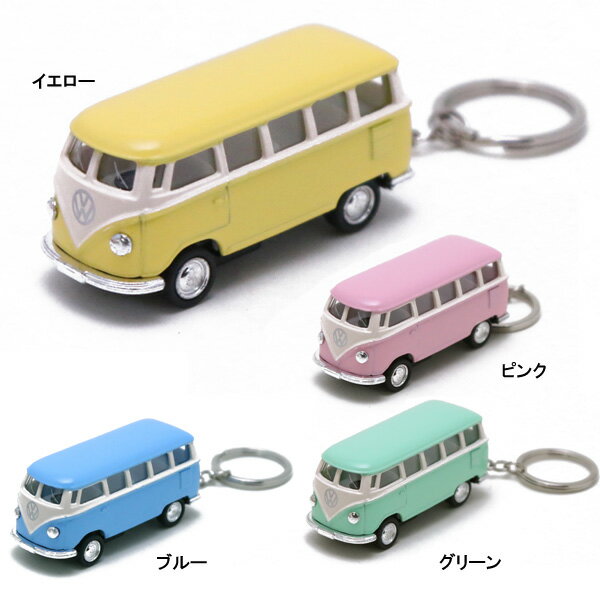 【ミニカー キーホルダー】【フォルクスワーゲン】クラシカルバス (ワーゲンバス) 1:64 スケール キーチェーン ピンク イエロー ブルー グリーン パステルカラー【volkswagen VW classical bus トイ おもちゃ 車 カー】